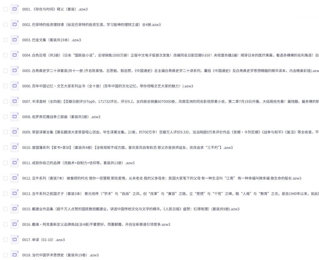 涵盖了多个领域,如文学、历史、经济、投资、科学等,每套书籍都是某一领域的经典之作或权威编著。这样的套装书对于想要广泛涉猎不同领域知识、提升自我修养的读者来说,无疑是一个极具吸引力的选择。400套付费套装书,价值上万!夸克网盘