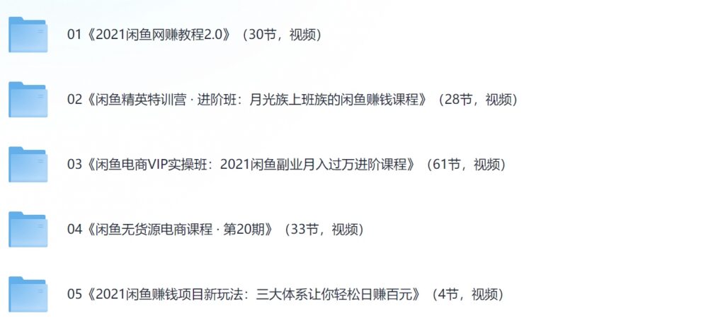 名称:闲鱼电商合集-5套正价课程(先看这个里面有排序)