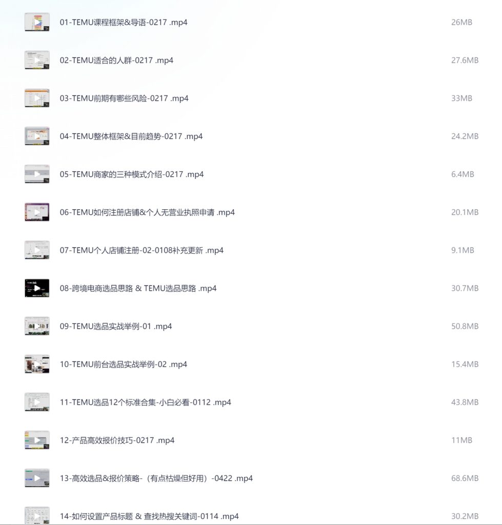 伍跃·跨境拼多多TEMU实操与选品,趋势选品运营入住(27节完整) 详情介绍 伍跃·跨境拼多多TEMU实操与选品,趋势选品运营入住(27节完整) 下载链接 资源下载💎 夸克网盘提示:如链接失效,请在评论区留言
