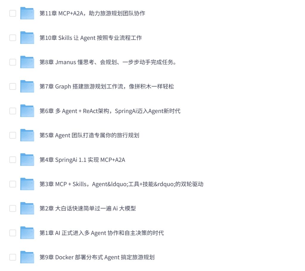 📁 mksz981-多 Agent+Skills+SpringAI 构建自主决策智能体(前11章)